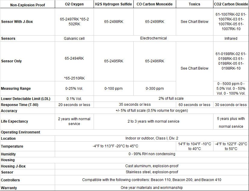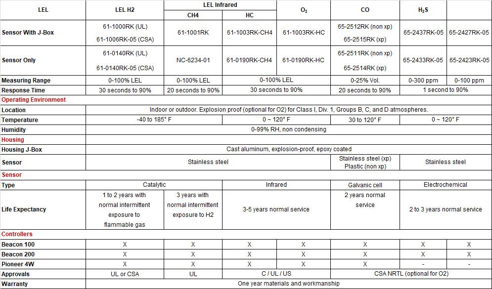 All of the direct connect sensors are designed to specifically interface with RKI controllers.